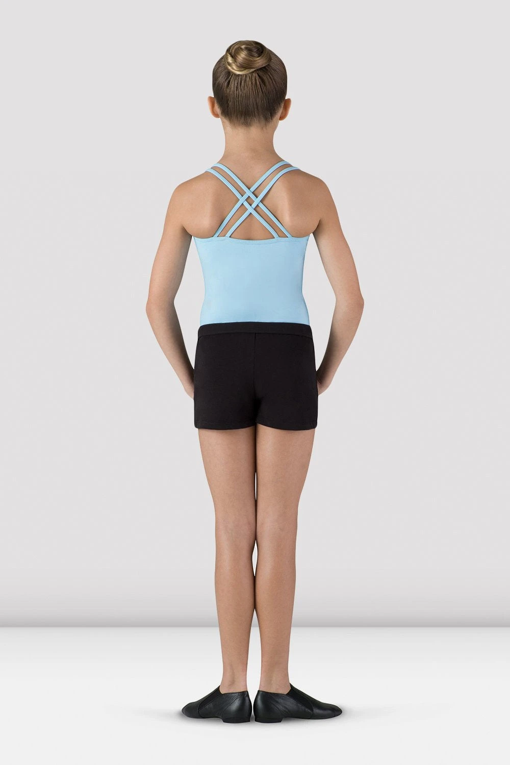 Build your dance separates collection with the girls classic fitted cotton dance short featuring a V front waistband. Versatile and durable, this piece is perfect for layering over your dance outfit.