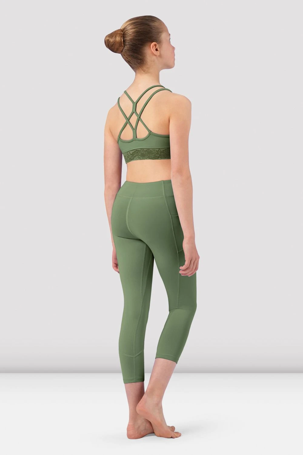 Our Girls Tahlia Camisole Crop Top features a scoop neck with double crossover straps and printed lace band. Part of our Girls BLOCH Lace collection featuring delicate designs, delightful lace prints and soft mesh detailing. This collection will have you ready to leap on stage, available in a palette of soft floral tones.