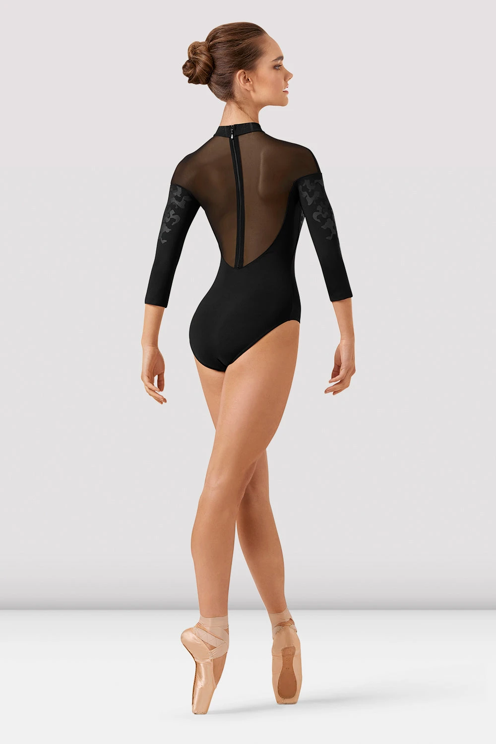 Our Ladies Boutique High Neck Leotard features a mesh upper and zipper back with a sweetheart neckline and long sleeves, finished with a Mirage print bodice and arms. Part of our BLOCH Mirage Collection featuring a variety of cool and classic silhouettes in a palette of deep and elegant autumnal hues.